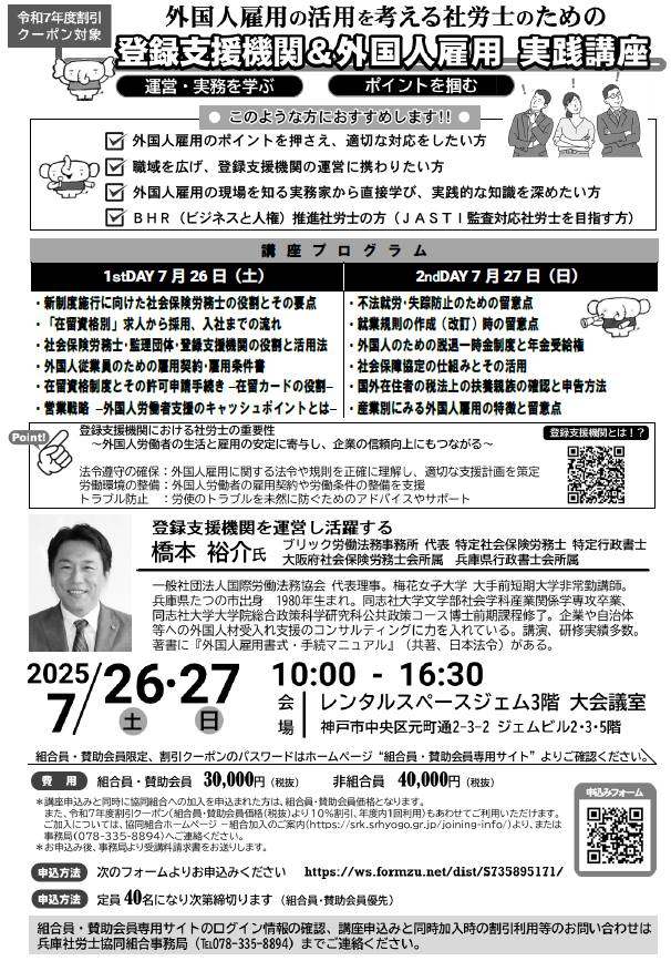 登録支援機関&外国人雇用 実践講座 | 兵庫社労士協同組合